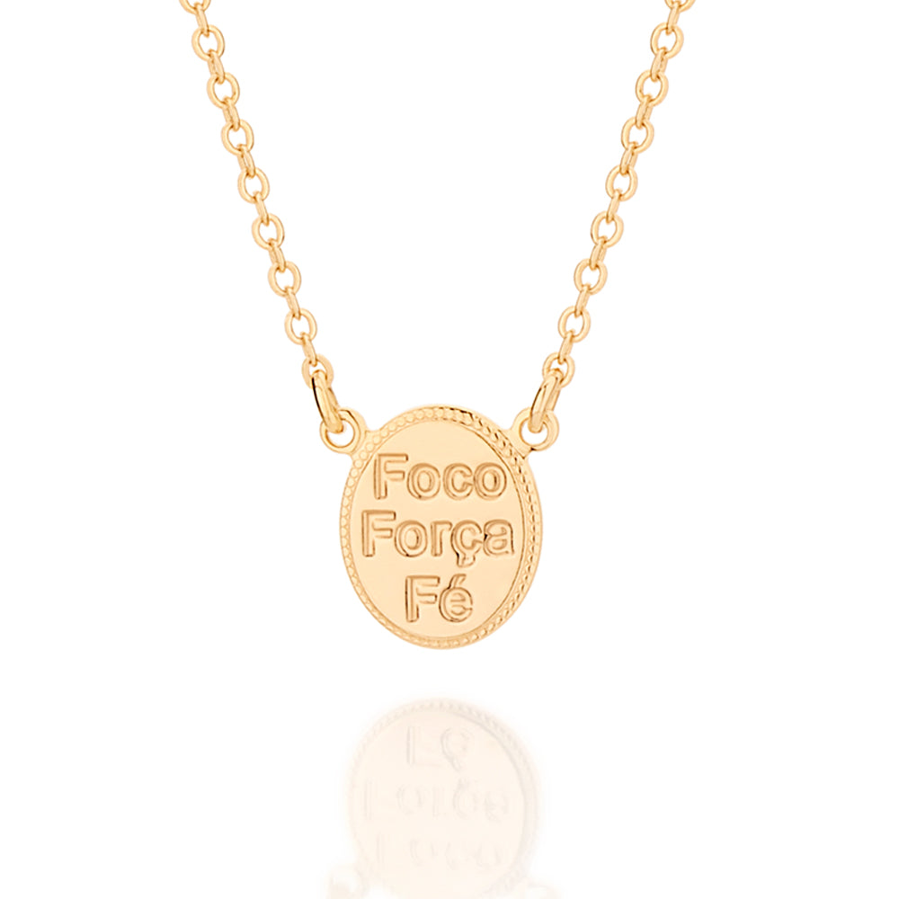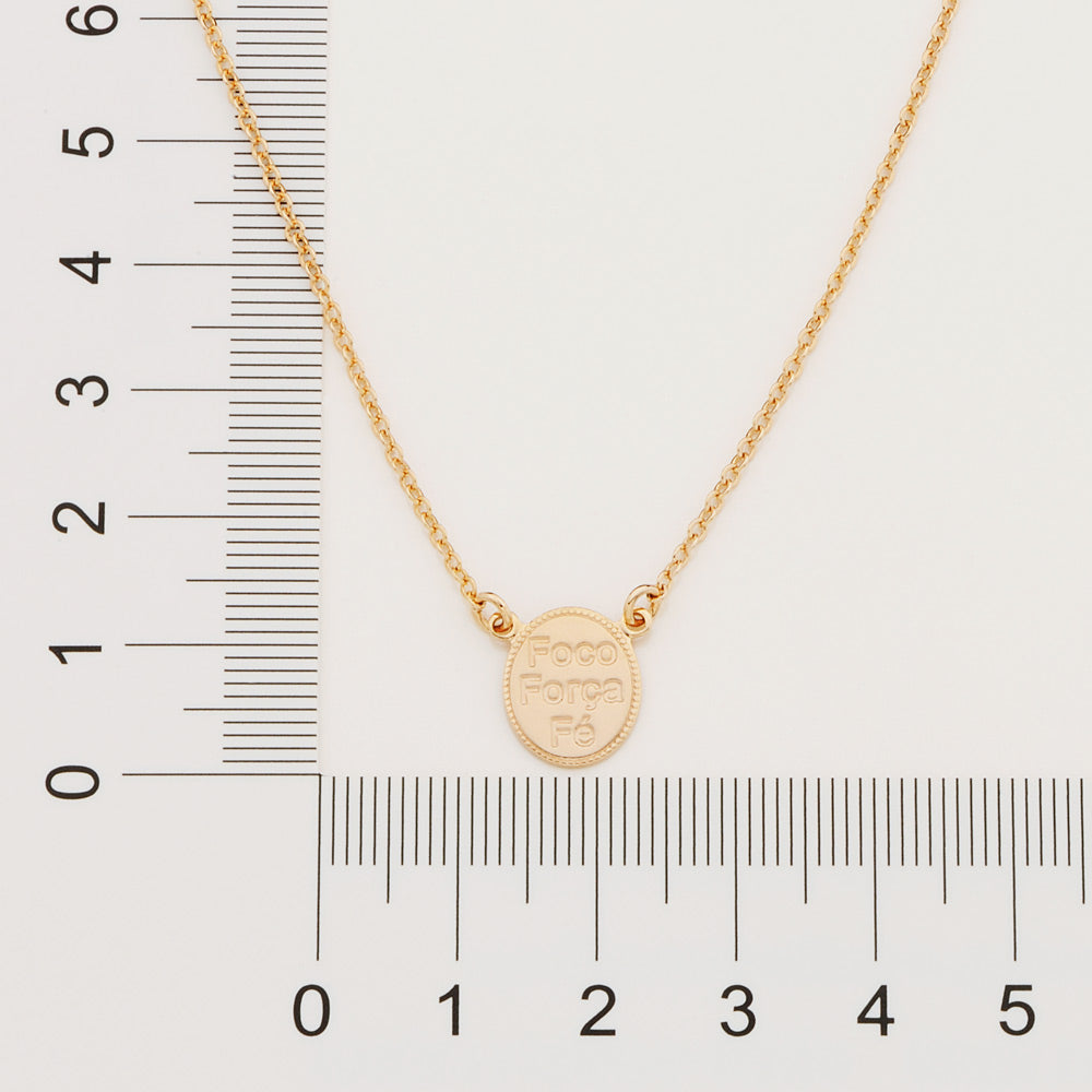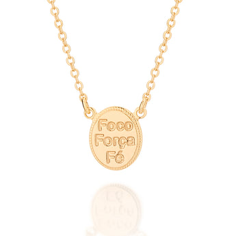 DESCRIPTION: ROMMANEL INTRODUCES ITS NEWEST COLLETION: ROOTS, A JEWELRY LINE THAT EXPRESSES THE ESSENCE AND ORIGINS OF BRAZILIAN ARTIST DUO SIMONE & SIMARIA. DIVIDED INTO THREE SUBCOLLECTIONS: OUR ESSENCE, SIMONE'S FAVORITES, AND SIMARIA'S FAVORITES, THE COLLECTION BRINGS PIECES THAT EVOKE FAITH, GRATITUDE, FAMILY AND THE LOVE FOR MUSIC. GOLD PLATED NECKLACE COMPOSED OF A CURB CHAIN MEASURING 50CM - CAN BE ADJUSTED TO 45CM - WITH A ROUNDED PENDANT ENGRAVED WITH THE WORDS FOCO, FORCA, E FE (FOCUS, STRENGTH, AND FAITH). | SIZE: 50CM - CAN BE ADJUSTED TO 45CM. | MATERIAL: 18K GOLD PLATED. (LICENSED JEWELRY COLLECTION SIMONE & SIMARIA 1ST EDITION)