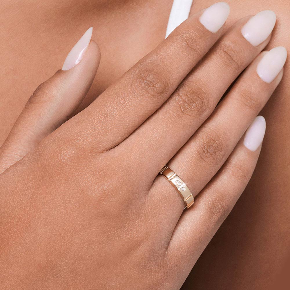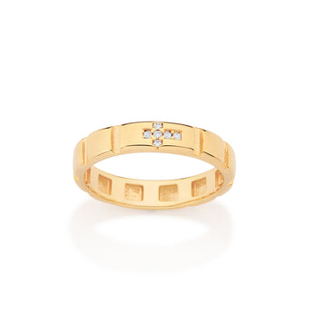 A MEANINGFUL EXPRESSION OF FAITH, THE 18K GOLD-PLATED GRACE AND LIGHT RING FEATURES A DELICATELY SCULPTED CROSS ADORNED WITH SIX 1MM ZIRCONIAS, ALL SET AGAINST A SOFTLY TEXTURED BAND IN LOW RELIEF. RADIATING SUBTLE SPARKLE AND SPIRITUAL SYMBOLISM, THIS PIECE IS PERFECT FOR DAILY WEAR OR AS A HEARTFELT GIFT.
