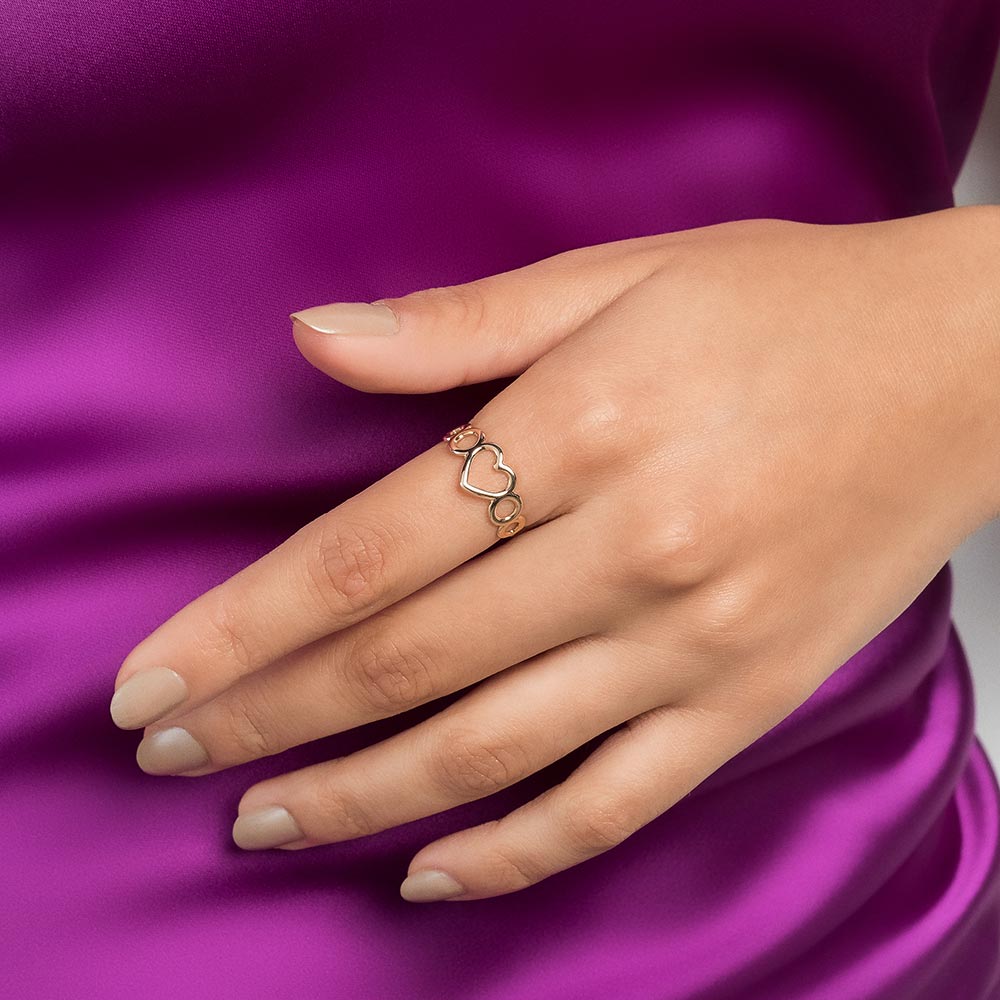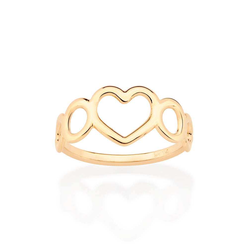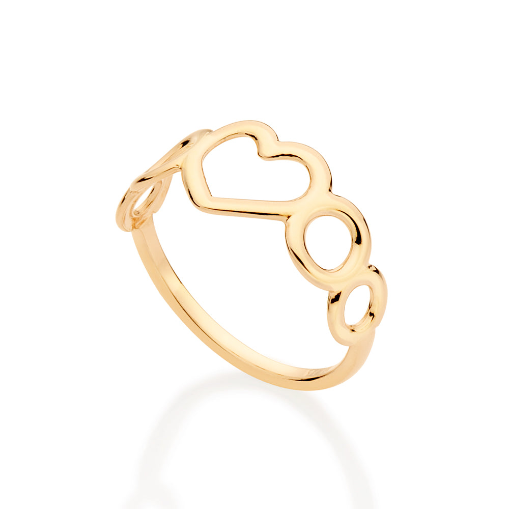 Gold plated ring composed of 4 hollow circles and 1 hollow heart design.