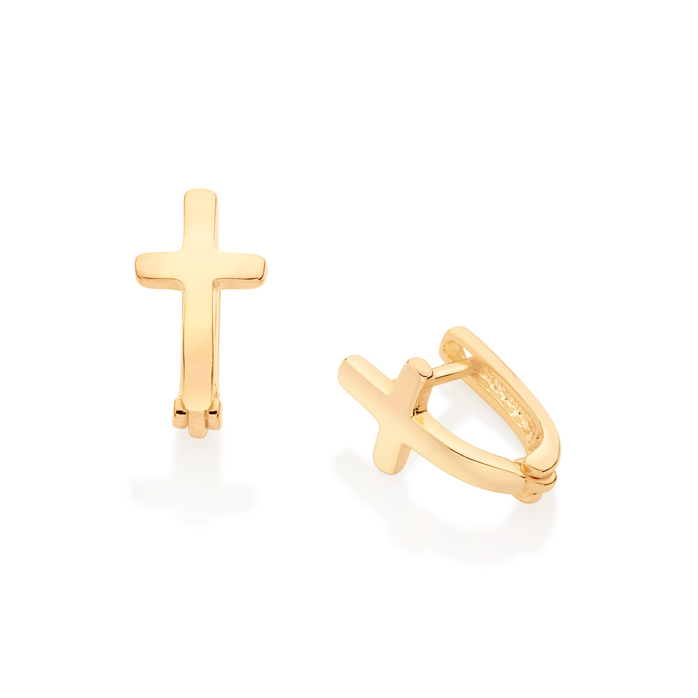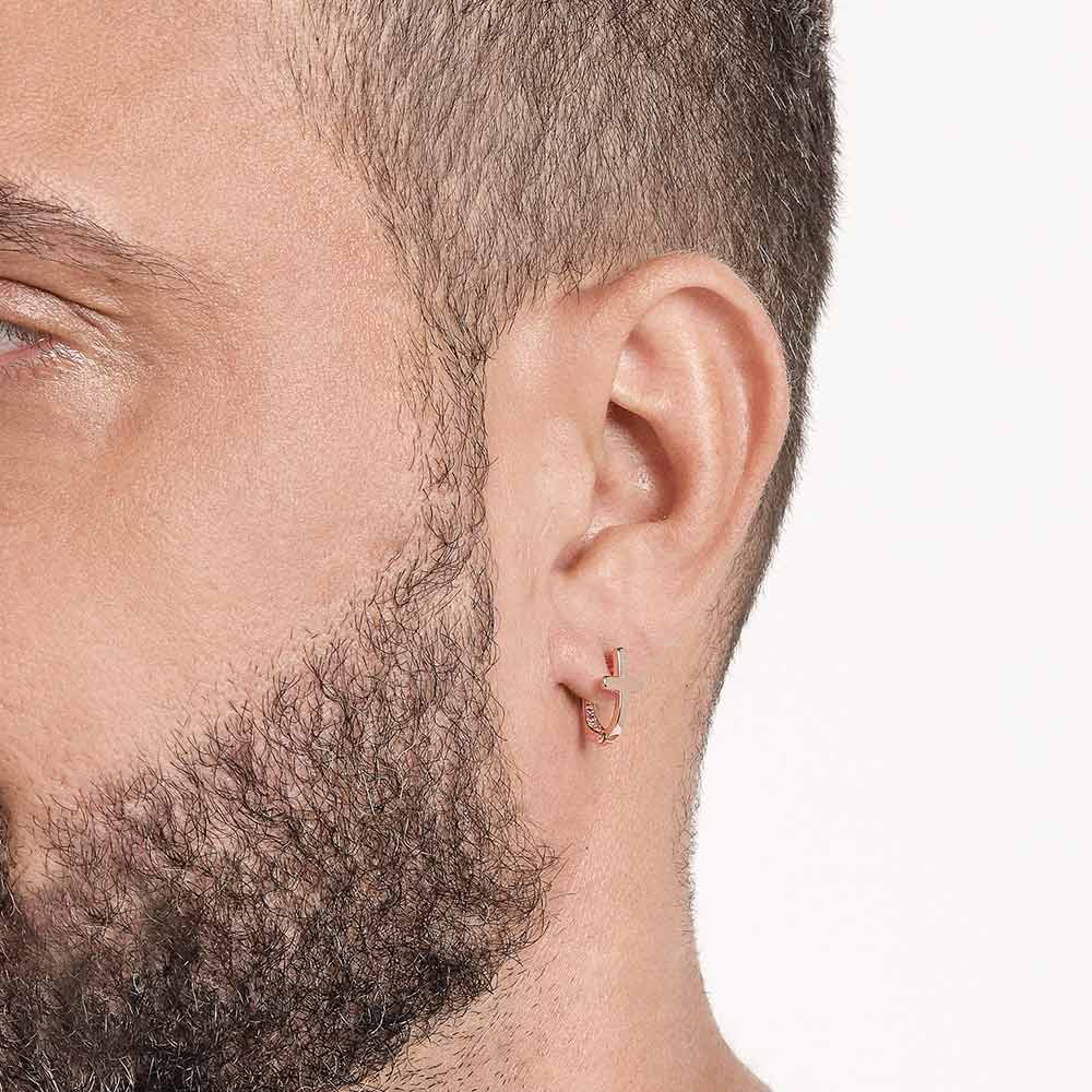 GOLD MEN’S CROSS SHAPED HUGGIE EARRINGS