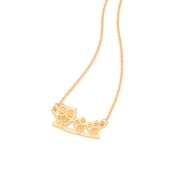 Rommanels permanent collection brings you traditional jewelry designs that are independent of current fashion trends and always in style. our Mothers day day capsule brings delicate and timeless pendants that represent the most pure and truthful emotion – the love between a mother and her child. gold plated necklace composed of a cable chain measuring 50cm – can be adjusted to 45cm – featuring a pendant with three (3) owls representing the mother owl and two (2) babies owls. this necklace is a unique way to display your two babies and always have them with you. | size: 50cm- can be adjusted to 45cm. | material: 18k gold plated. | also available with three (3) baby owls.