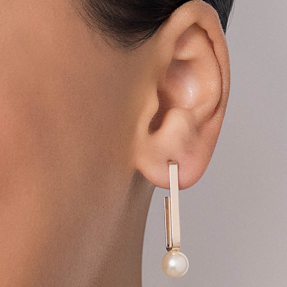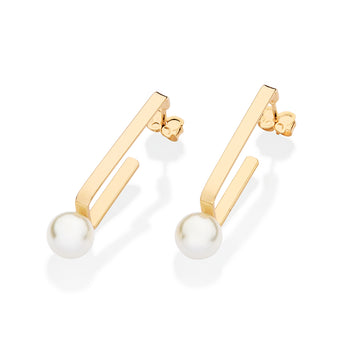 GOLD PEARL OF TIME SQUARE HOOP EARRINGS
