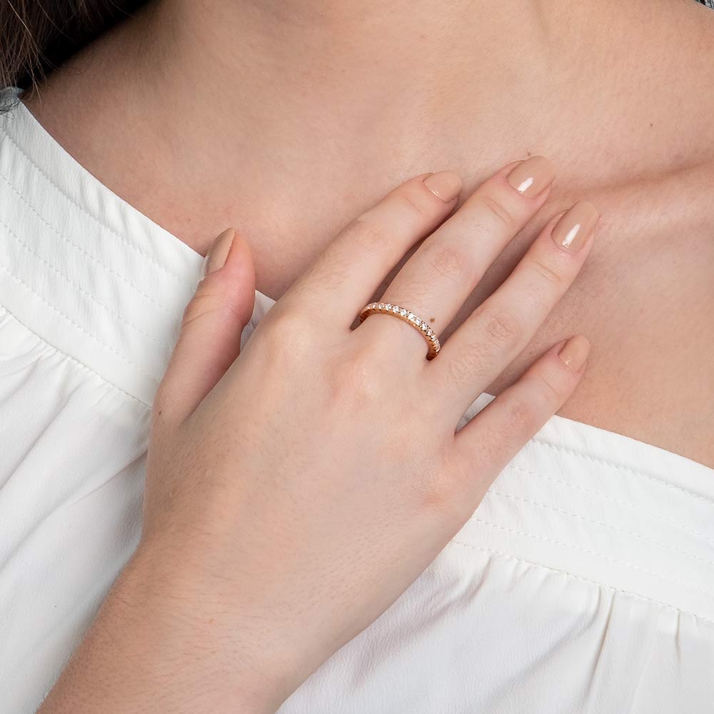 Guard ring pavé-set with 28 cubic zirconia stones measuring 1.75 mm each (the number of stones may vary depending on the ring size)