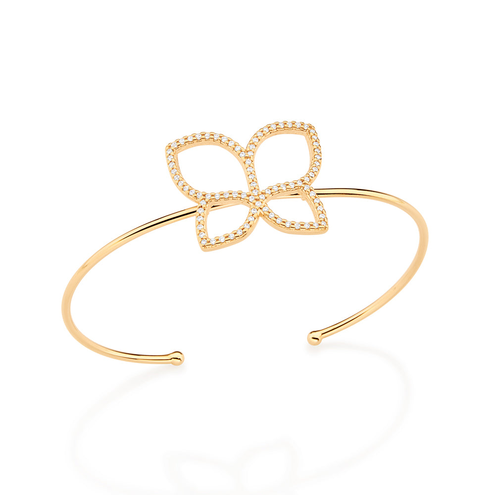 Gold plated cuff bracelet composed of 1 rommanel butterfly logo studded by 82 white zirconias measuring 1mm each. size: 6.8cm.