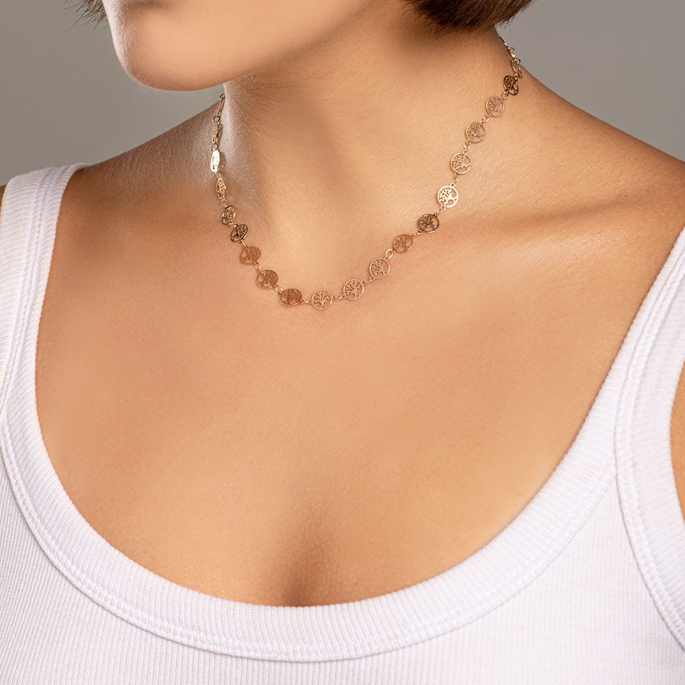 Rommanel's 2020 collection, colors of life, shows us that every color takes us to a special moment, memory, feeling, or experience in our life. by putting all those colors together, we have an amazing understanding and experience of life.â in our collection's subcategoy, faith in life, you will find pieces that make you remember that living is believing that anything is possible.â gold plated choker composed of tree of life circles. | size: 42cm. | material: 18k gold plated. (licensed jewelry collection 2020 - 1st cycle)"