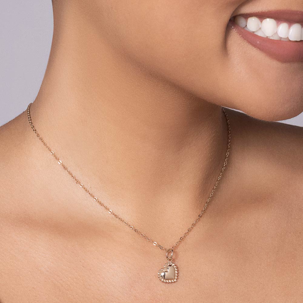18k gold-plated pendant in the shape of a heart with spheres as the outline. size: 1.9cm x 1.1cm (0.74in x 0.43in). Chain not included.