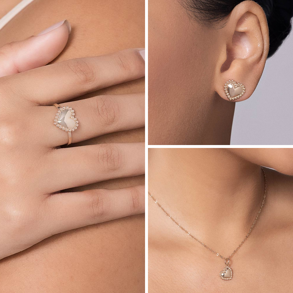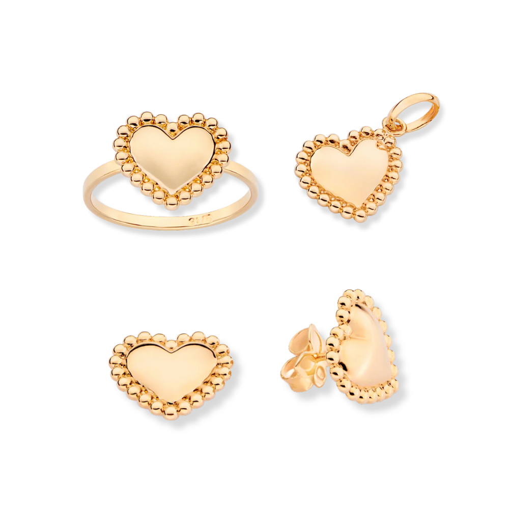 JEWELRY SET GOLD BEATING HEART (RING+ PENDANT + EARRING)