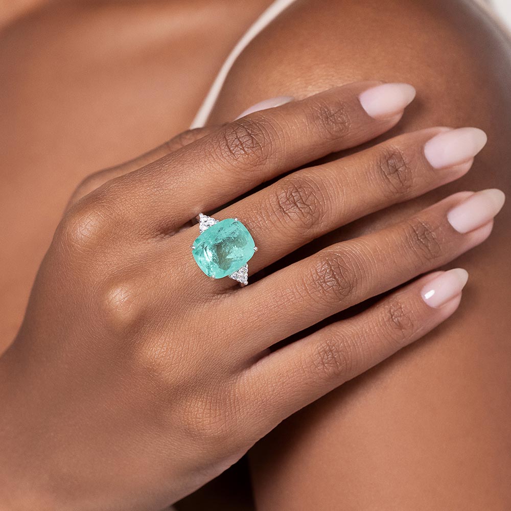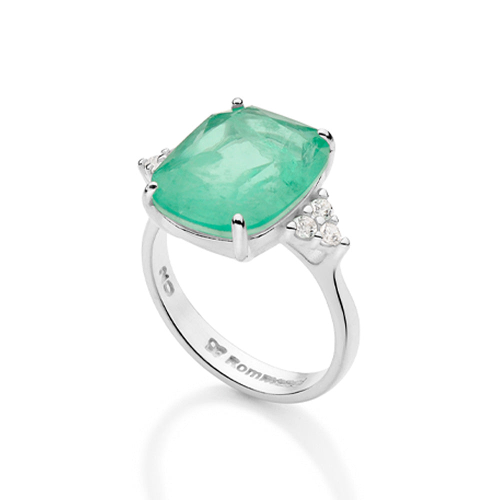 A STATEMENT OF COLOR AND LUXURY. HANDCRAFTED IN SOLID 925 SILVER, THIS STUNNING RING SHOWCASES A 12.5 × 15MM FUSION TOURMALINE CRYSTAL SURROUNDED BY SIX SPARKLING ZIRCONIAS (2MM EACH). ITS BOLD YET REFINED DESIGN ADDS INSTANT SOPHISTICATION TO ANY OUTFIT.